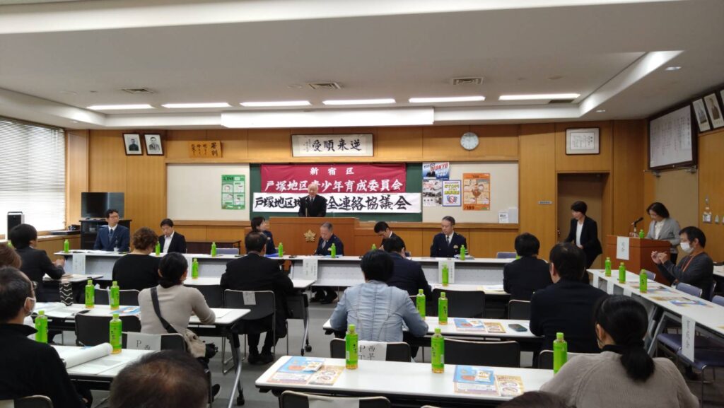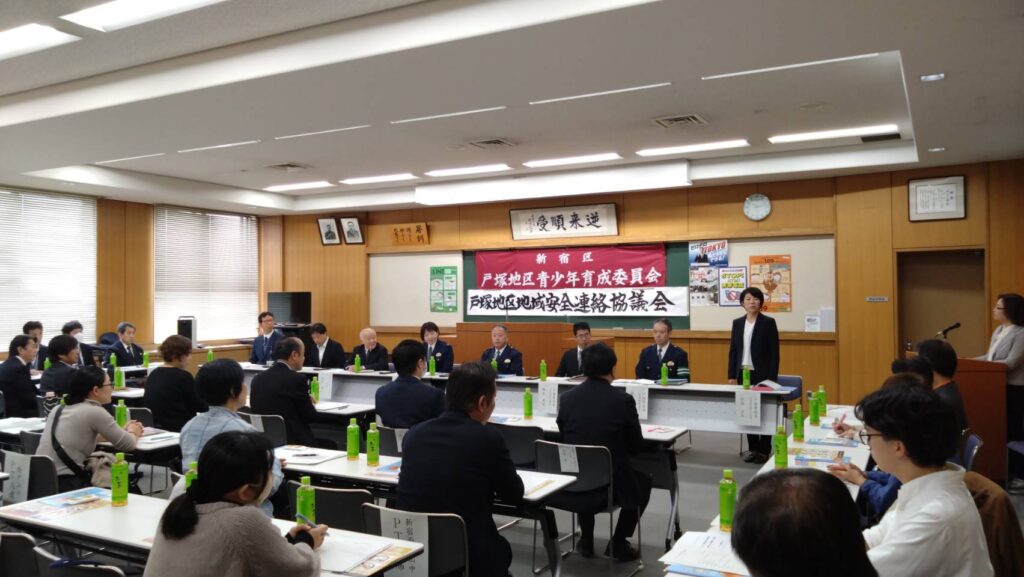 地域安全連絡協議会は、戸塚地区のPTAや地域の皆様から、ご自身の生活する地域における危険個所について意見を収集し、東京都、新宿区、戸塚警察署の皆様と対策を協議したり是正を求めたりする、戸塚育成委員会主催の年に1度の協議会です。