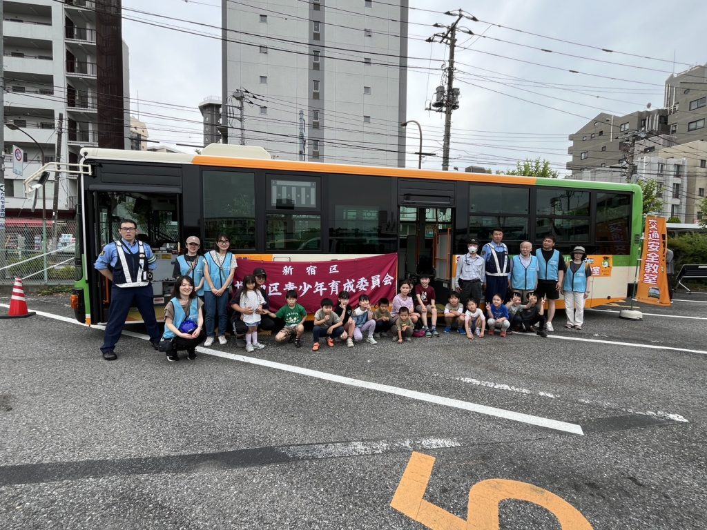 今回は東京都交通局様のご協力で、「バスの運転席に座る」という特別体験を行っていただきました。運転席からは、近くの前方が死角になっており、子どもたちが実際に着席してみることで、バスの直前直後への立ち入りがとても危険なことが感じられる体験になりました。
