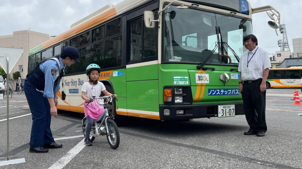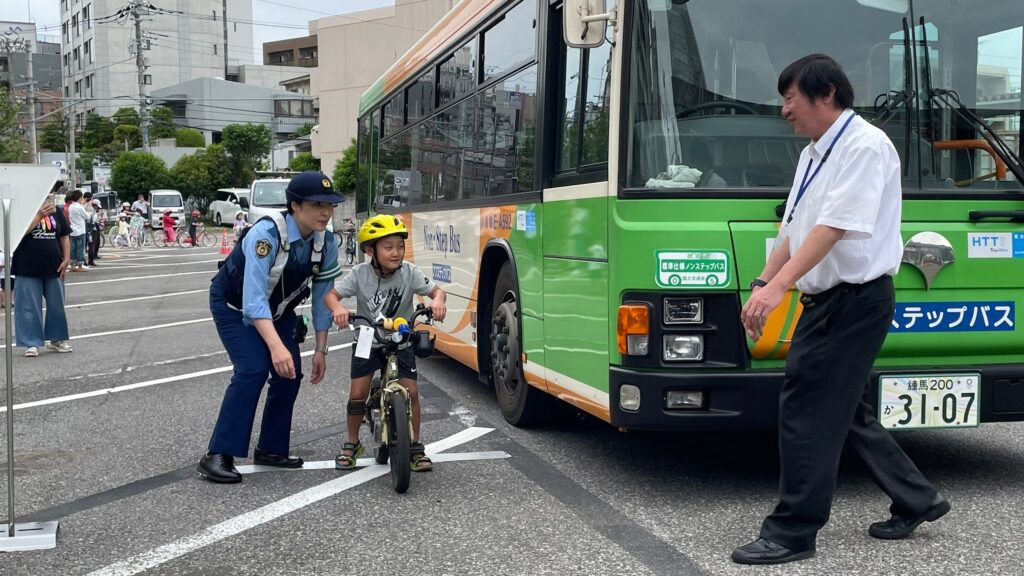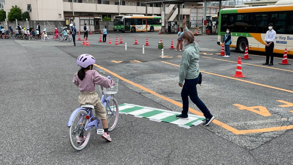 見通しの悪い交差点や、停めてある車両の脇を通行するときにはどこに目を配ればいいのかなど、ありそうなシチュエーションでの練習で、参加した子どもたちにとって危険な場面の練習になったようです。