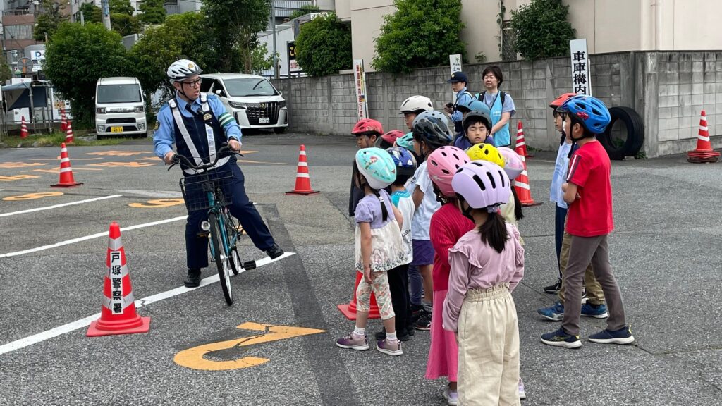 戸塚地区青少年育成委員会では、戸塚警察署、新宿区、東京都自転車商協同組合にご協力をいただき、毎年小学生の児童に向けた自転車安全教室を開催しています。
