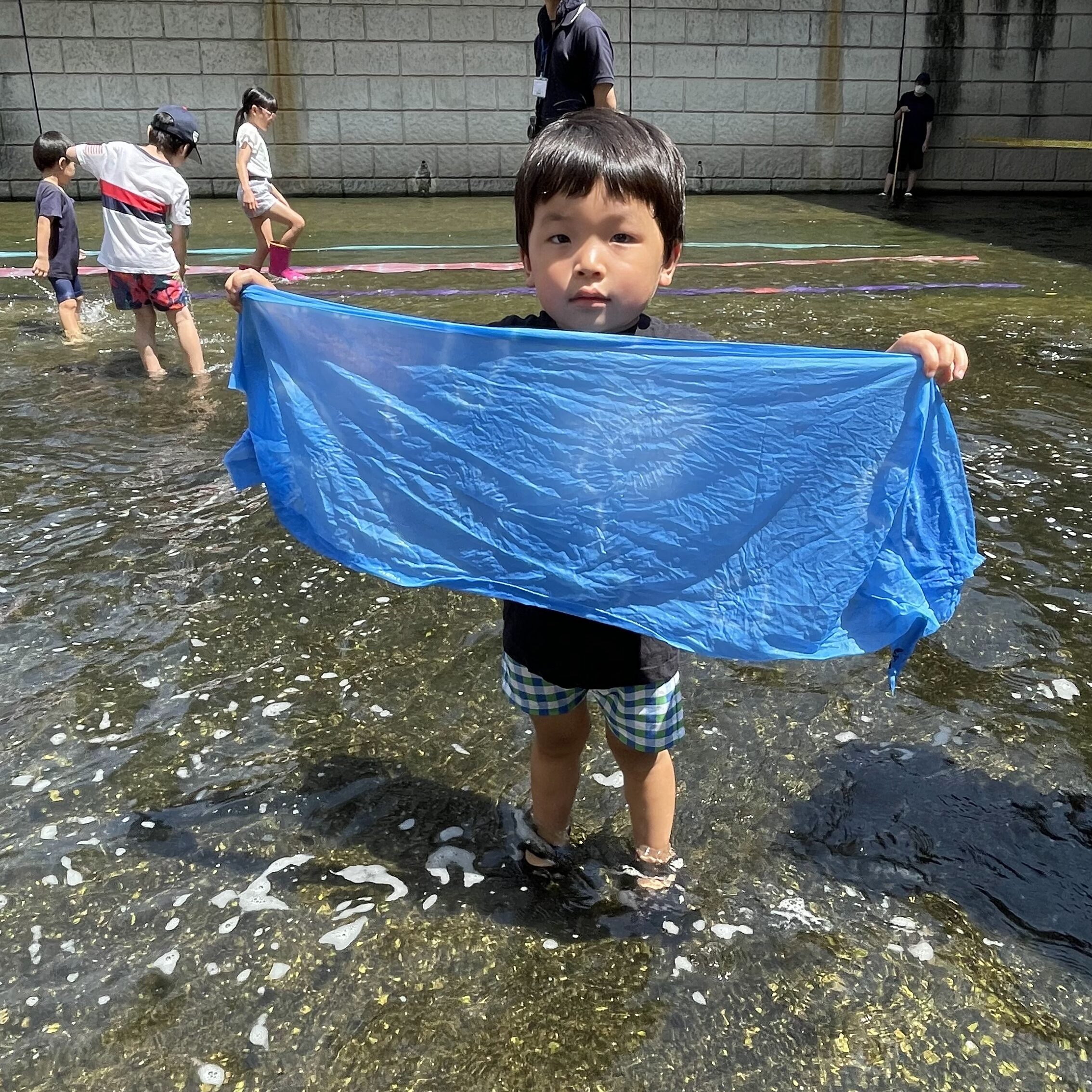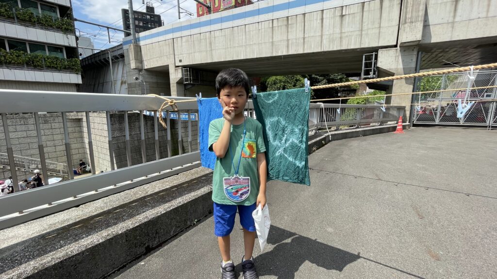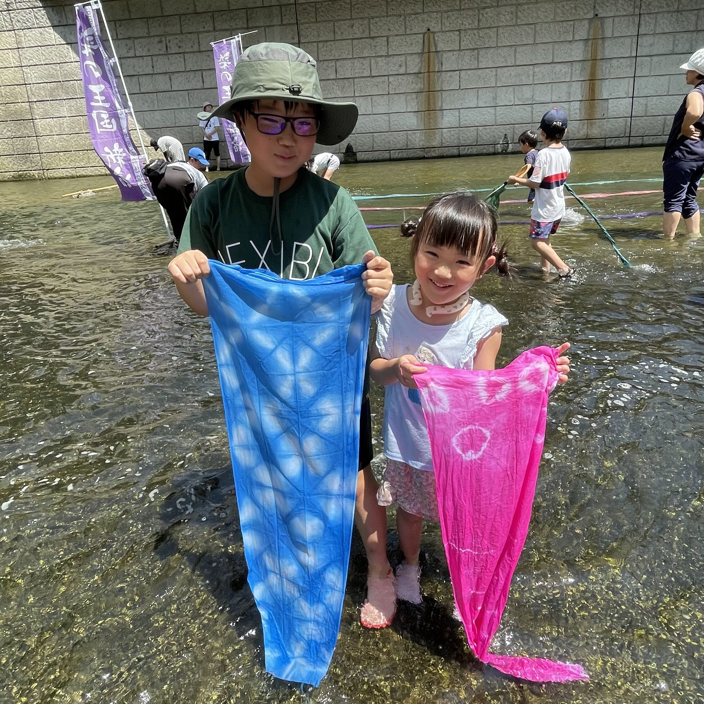 同時開催で、染色協議会の皆様による作品展示や、当時の水元再現(神田川で行われていた染物を洗い流す風景の実演再現)なども行われました。さらに、子どもたちは神田川に入っての水遊びも楽しみ、夏の一日を満喫しました。